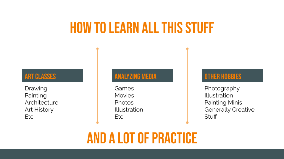 NUMBER ONE: Not everything can be cool and unique, and it probably shouldn’t be anyways. When everything is cool and unique, nothing is, it just becomes noise. Between areas of interest you need areas of rest where things are maybe a little less interesting. Not to mention the sheer volume of work that comes with trying to make everything unique. If you have time for that, and everything's meant to be a 1 to 1 replica, then maybe that’s what you want but in most games that’s not feasible because of either time or performance.